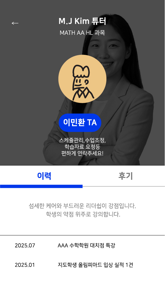 학생의 맞춤으로 배정됨 튜터와 수업전담 TA가 관리하는믿을 수 있는 클래스